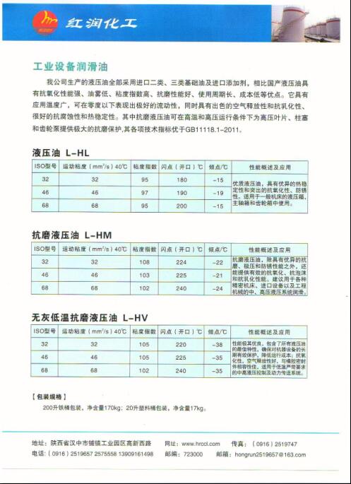 液压油L-HL、L-HM、L-HV